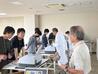 20日(月)は土曜の振り替えで休日。この休日を利用して、希望者による三島高校サイエンスツアーが実施されました。今回は「知的探求の旅に出よう! 島津製作所 見学・体験ツアー 『ぶんせき体験スクール』」と銘打って、京都市にある島津製作所を訪問。8名の生徒が参加してくれました。島津製作所は、ノーベル化学賞を受賞した田中耕一さんが研究開発を行った会社です。そこで簡単な実験を行いながら、光と色に関する知識を学習し、分光光度計を使って飲料の色の違いを分析。午後は記念資料館を見学しました。三島高校ではこんな経験も出来ます!
