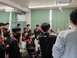 本日(6日)木曜の午後は、LHR(ロングホームルーム)の時間。学年によって様々な取組みがなされています。1年生は、クラスレクをしたり、3学期の音楽会に向けて合唱の練習をしたり…。2年生は体育館に集合し、学年集会。3年生は高校生活最後のイベントでスポーツ大会に取り組みました。