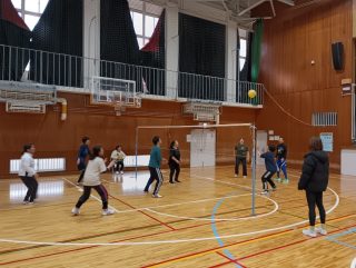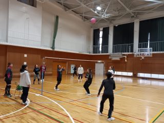 そして本日(6日)は、生徒たちが期末考査中の体育館を利用して、校内ソフトバレー大会。OBOGの方も参加OKということで、総勢34名の皆様が集まり、8チームのトーナメント戦。熱い戦いが体育館で繰り広げられました。皆さん、親睦ですよ!!