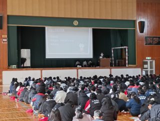 29日(木)午後は、総合的な探究の時間とHR。1年生は体育館で各クラスから選ばれた代表が自分の研究成果を発表しました。2年生は教室でクラス毎の発表。HRでは、1年生は先週に引き続き、球技大会。女子はグランドでドッジボール、男子は体育館でバレーボール。2年生は教室で個人写真の撮影とこまごまとした書類作成でした。いよいよ今年も残り少なくなってきました。残りの時間を悔いのないように過ごそう!!!