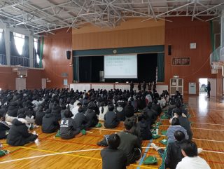 本日午後は2年生が「総合的な探究の時間」の総仕上げ、体育館でのプレゼンテーションでした。各クラスで選ばれた班が、様々なテーマでの取組み成果を発表します。昨年度は地域に拘ったテーマでしたが、今年度は更に広がって、「ロボットや人工知能が起こした事故の責任は誰にあるのか?」「利益と環境は両立できるのか?」「若者の読書離れを解決するには」「建築で南海トラフの被害を減らしたい」「より多くの人に音楽を楽しんでもらうには」「なぜ食品情報が豊富なのに栄養の二重負荷は解消されないのか?」「学生のニーズに答えられる施設をつくるには」「茨木市の交通について」「PFASとその問題点」という具合に、多岐にわたりました。面白かったぞ、2年生!